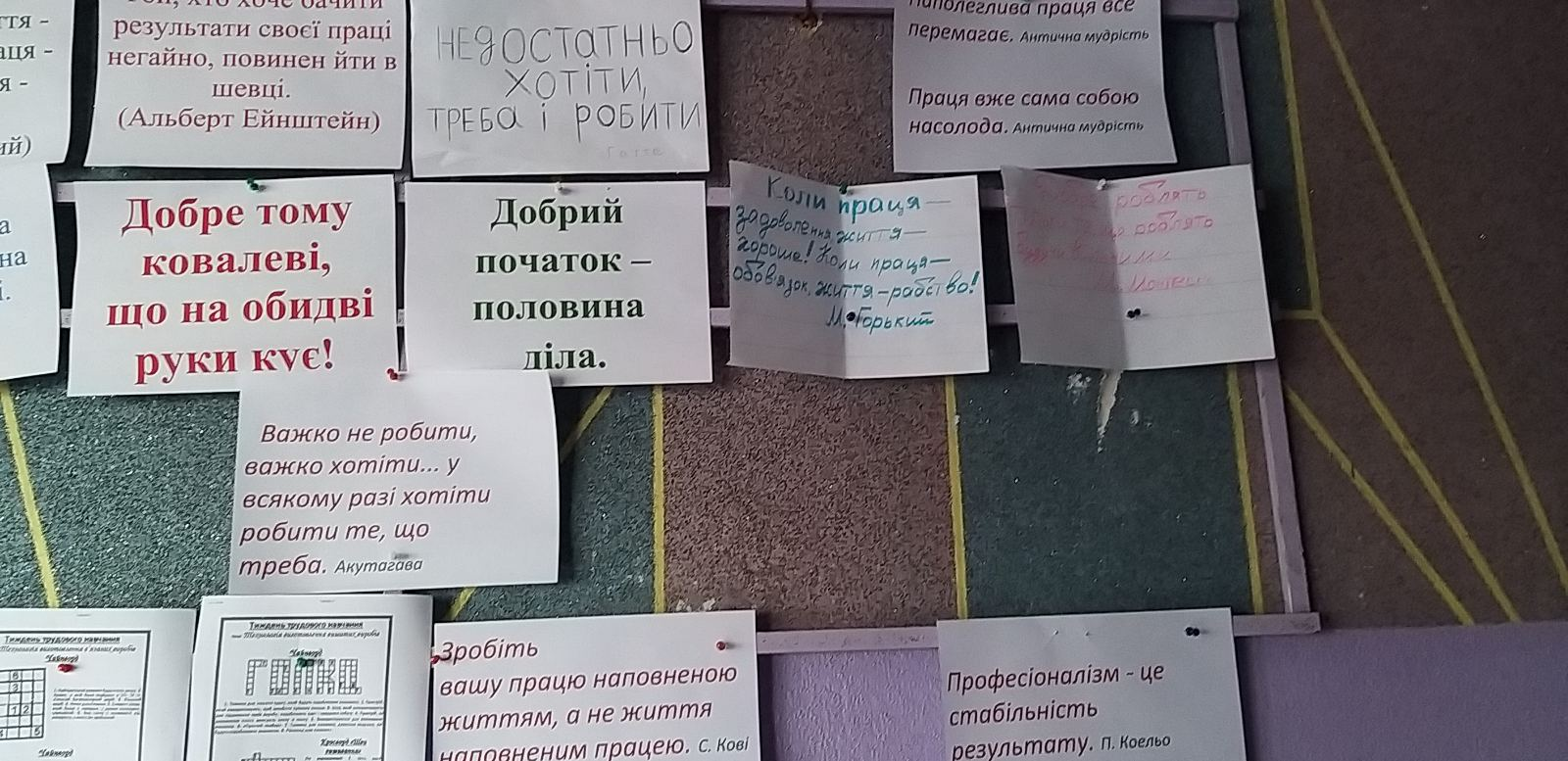 4 листопада в рамках тижня трудового навчання діти представили на розгляд жюрі та учнів мальовничо оформлені вислови про працю. Протягом дня точилася запекла боротьба за першість в розгадуванні тематичних кросвордів.